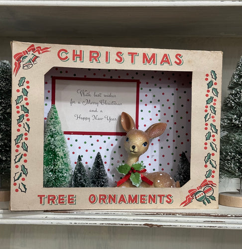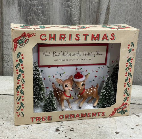 Christmas Tree Ornament Box w/Deer + Trees, Best Wishes for a Merry Christmas