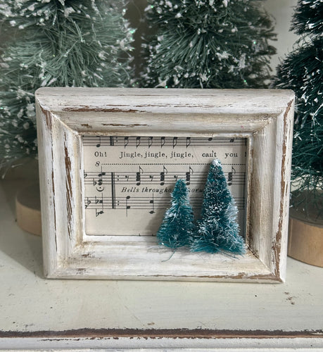 A creation that has stood the test of time....can't even remember how long I have been making these! Old frames that have been upcycled and feature a variety of vintage goods...hymns, greeting cards, old sweater backgrounds....or just about anything vintage that will fit inside!